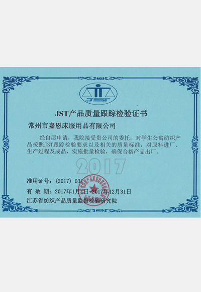 JST產(chǎn)品質(zhì)量跟蹤檢驗證書